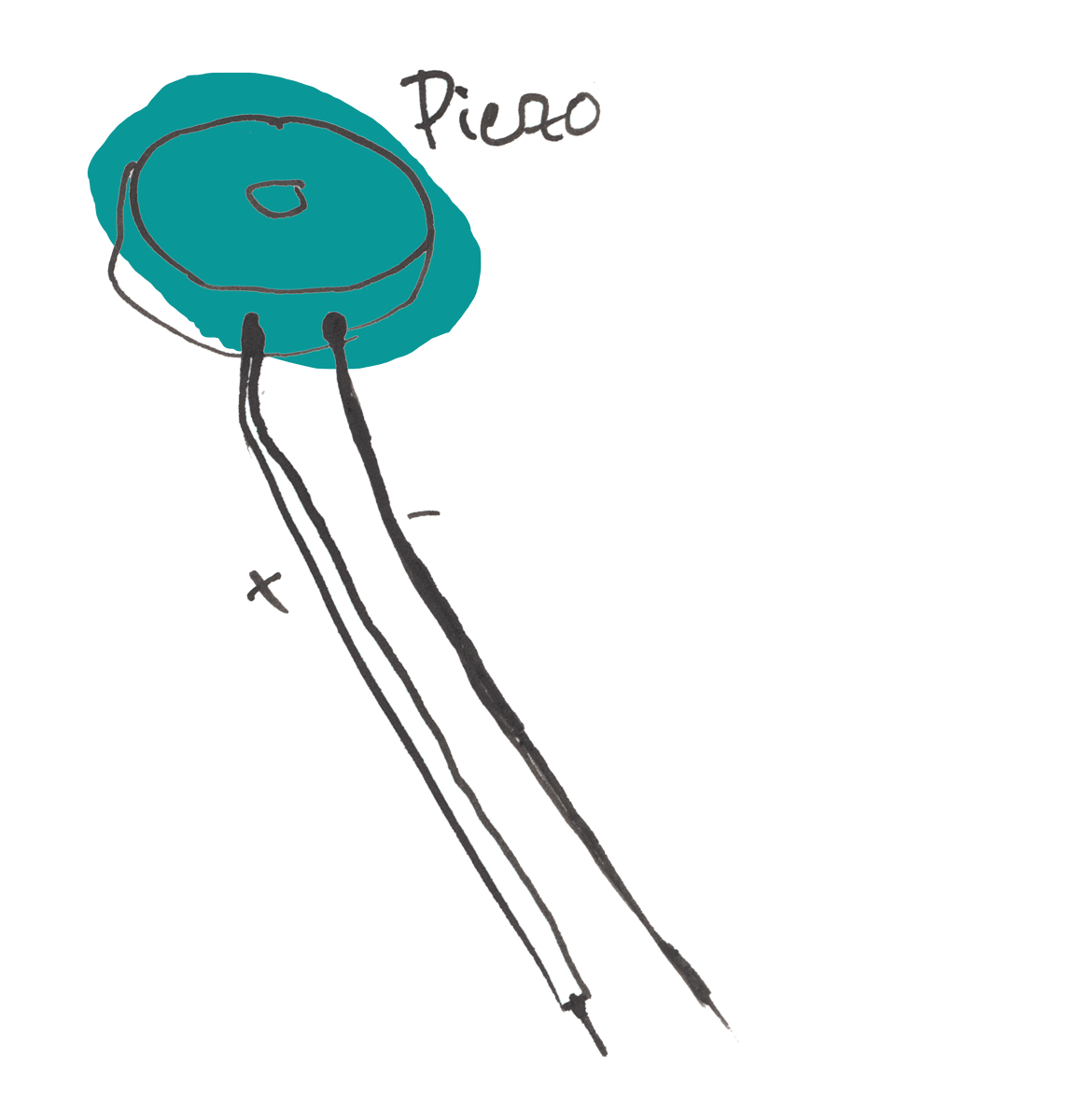 Now connect the piezos red wire (plus / power) with the chip’s leg number 2.